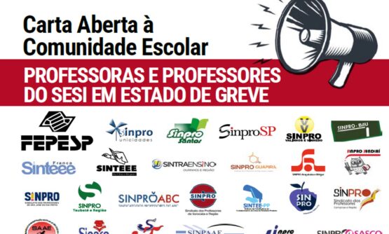 Docentes de todas as unidades do SESI-SP publicaram uma "Carta Aberta à Comunidade Escolar" para comunicar que a categoria se encontra em Estado de Greve