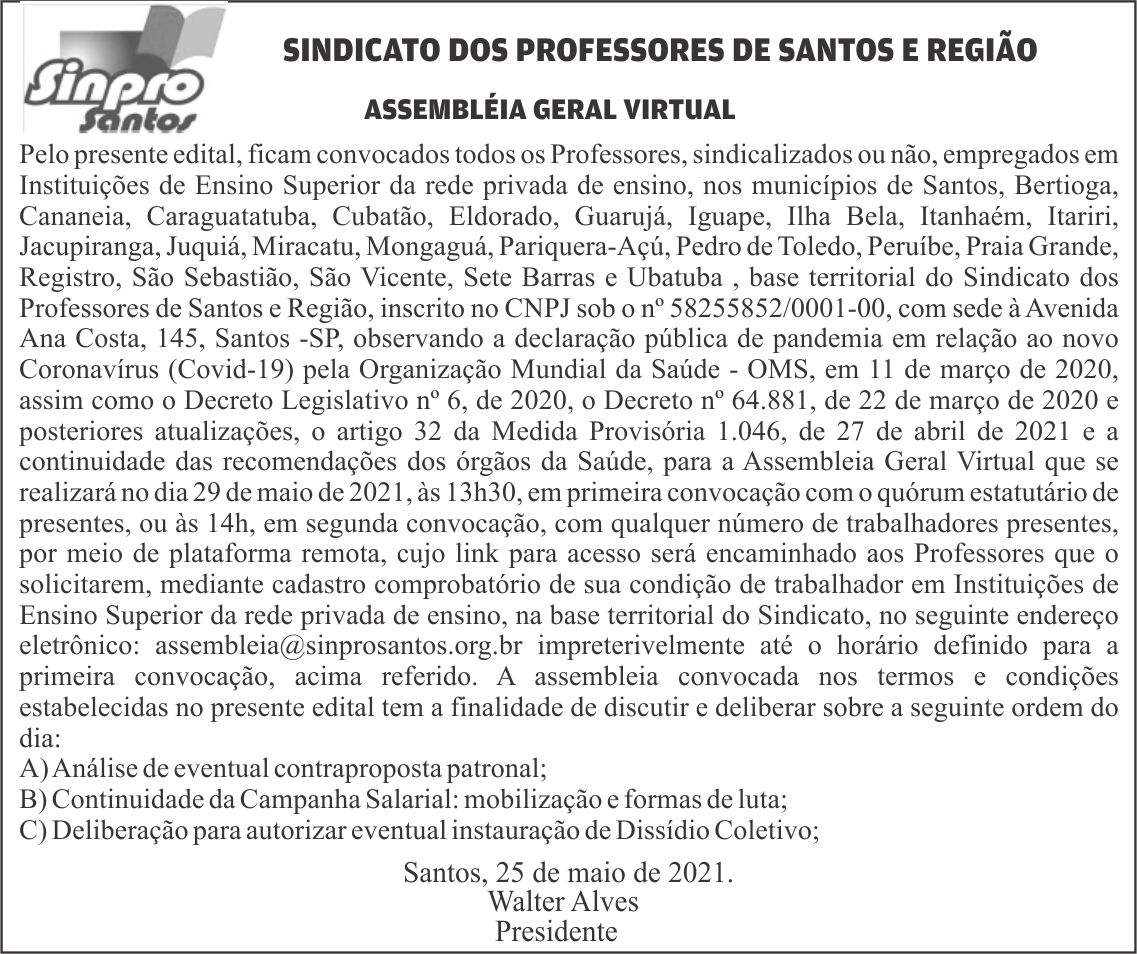 Faça sua inscrição: assembleia@sinprosantos.org.br