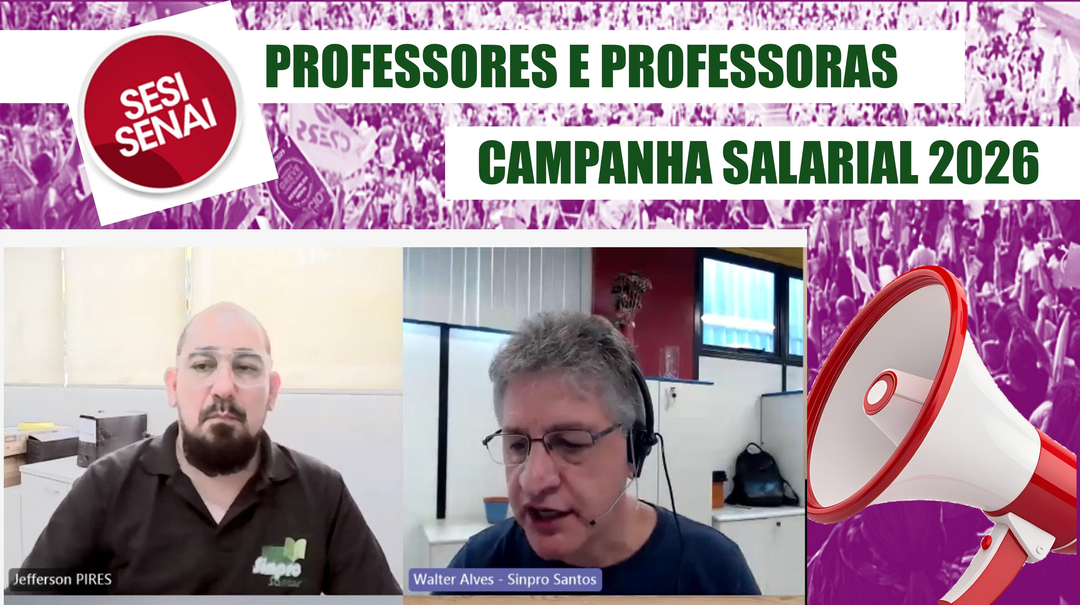 “Aprovamos um pacote de mobilização e discussão”. Foi com essa declaração que Walter Alves, presidente do Sinpro Santos e Região encerrou a Assembleia Geral Remota dos Professoras e os Professores e as Técnicas e os Técnicos de Ensino empregados do SESI-SP e do SENAI-SP dos municípios de Santos, Cubatão e Registro.