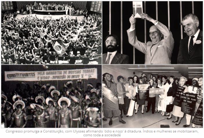 Na promulgação da Constituição de 1988, que nesta terça-feira (5) completou 33 anos, ficou marcado o discurso de 10 minutos do deputado Ulysses Guimarães sobre “ódio e nojo” à ditadura, que terminara formalmente em 1985. “A sociedade é Rubens Paiva, não os facínoras que o mataram.” Um relatório confidencial, revelado pelo pesquisador e professor Lucas Pedretti, mostra que o Exército considerou aquelas palavras “inoportunas, equivocadas e deselegantes”. Passadas três décadas, o país ainda vê sucessivos ataques à Carta, críticas aos direitos nela contidos e ainda tentativas de “esquecimento” histórico. Hoje, o país tem à frente um defensor do autoritarismo e fã de torturador.