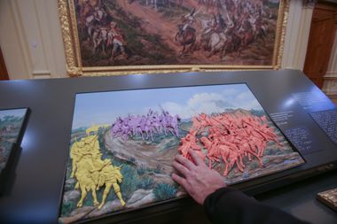 No Salão Nobre, por exemplo, em que se tem o quadro Independência ou Morte, a curadoria organizou uma réplica da obra em alto relevo para permitir que pessoas com deficiência visual “experimentem” o que está na obra. Há ainda um painel interativo destrinchando alguns dos principais elementos do quadro, que foi concluído em 1888 e tem 7,6 metros de comprimento por 4,15 metros de altura.
