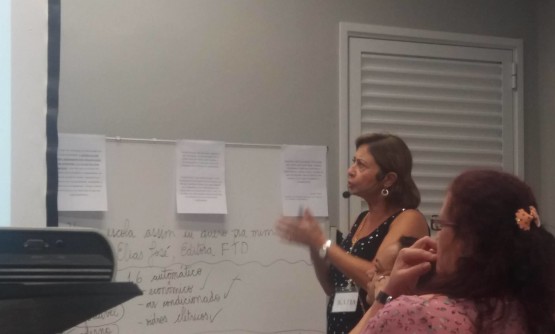 Desenvolvendo diversas formas de linguagens, a professora Kátia Karam, apresentou uma oficina interativa e que permite a qualificação dos profissionais na sala de aula.